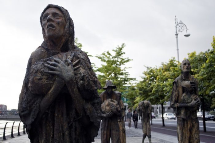 Grupo escultórico en bronce dedicado a los irlandeses que se vieron empujados a emigrar en la hambruna del siglo XIX.