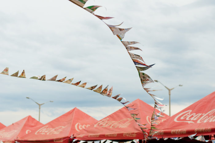 Banderines reciclados para dar ambiente a la Vy’apa Guasu Paraguaiete, otro de los proyectos piloto que salieron del taller de activación urbana del Plan Encarnación Más.